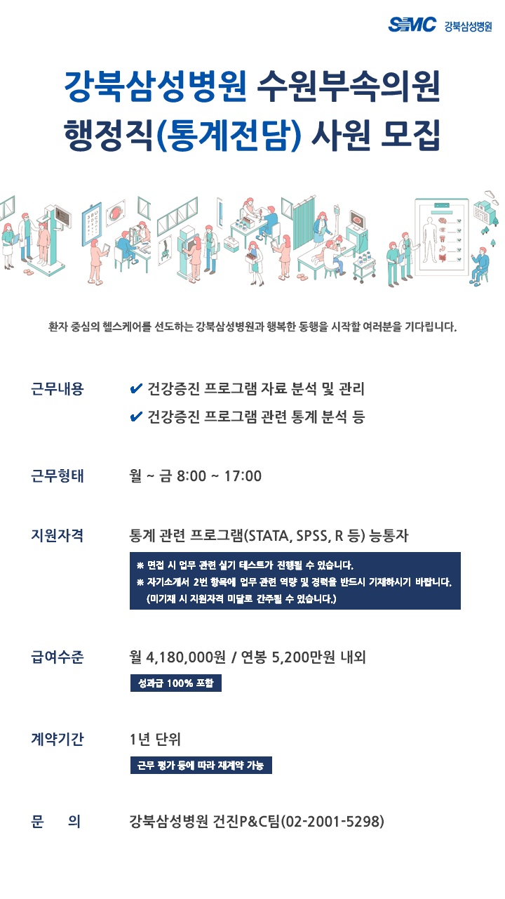 [채용]강북삼성병원 수원부속의원 행정직(통계전담) 사원 모집공고