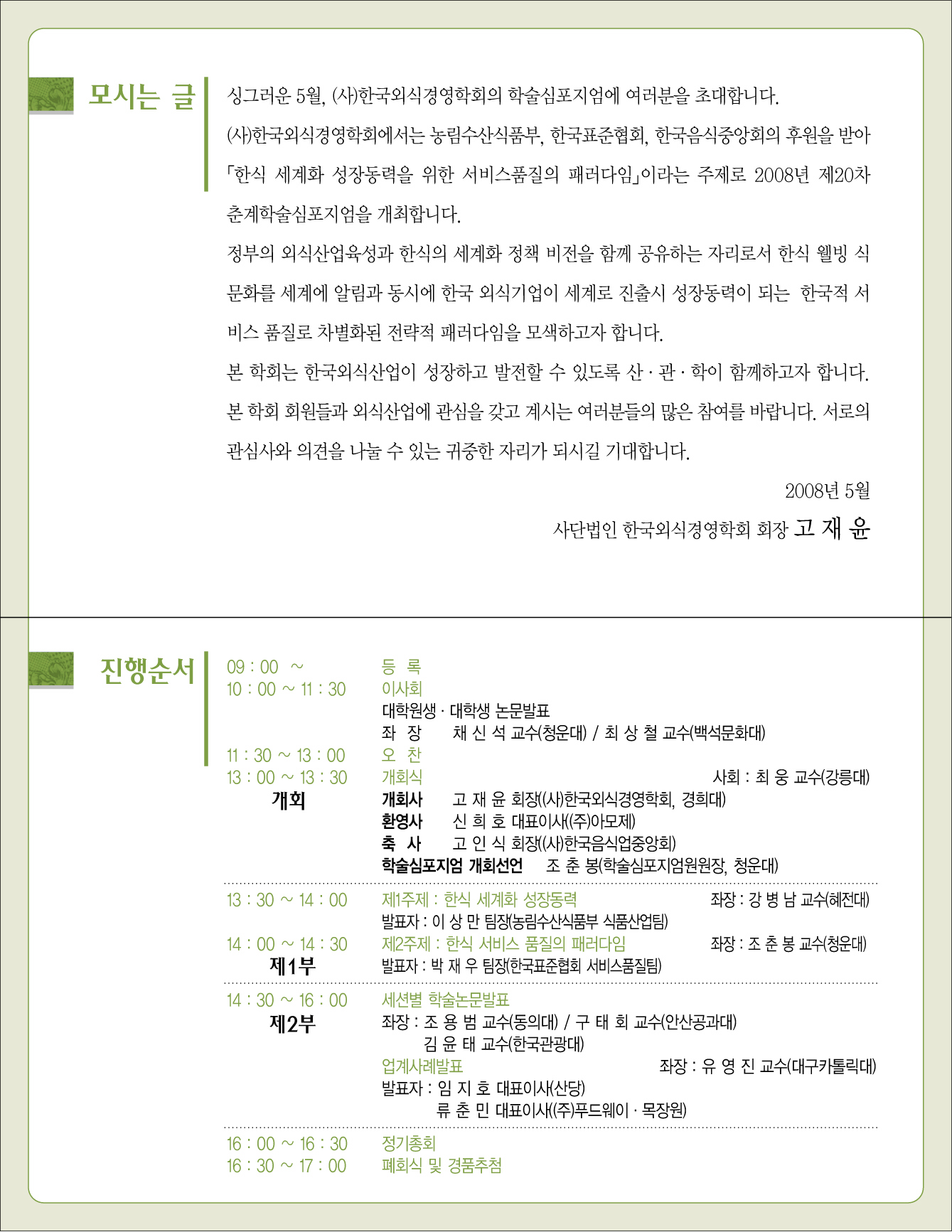 2008년 제20차 (사)한국외식경영학회 춘계학술심포지엄 감사의 글