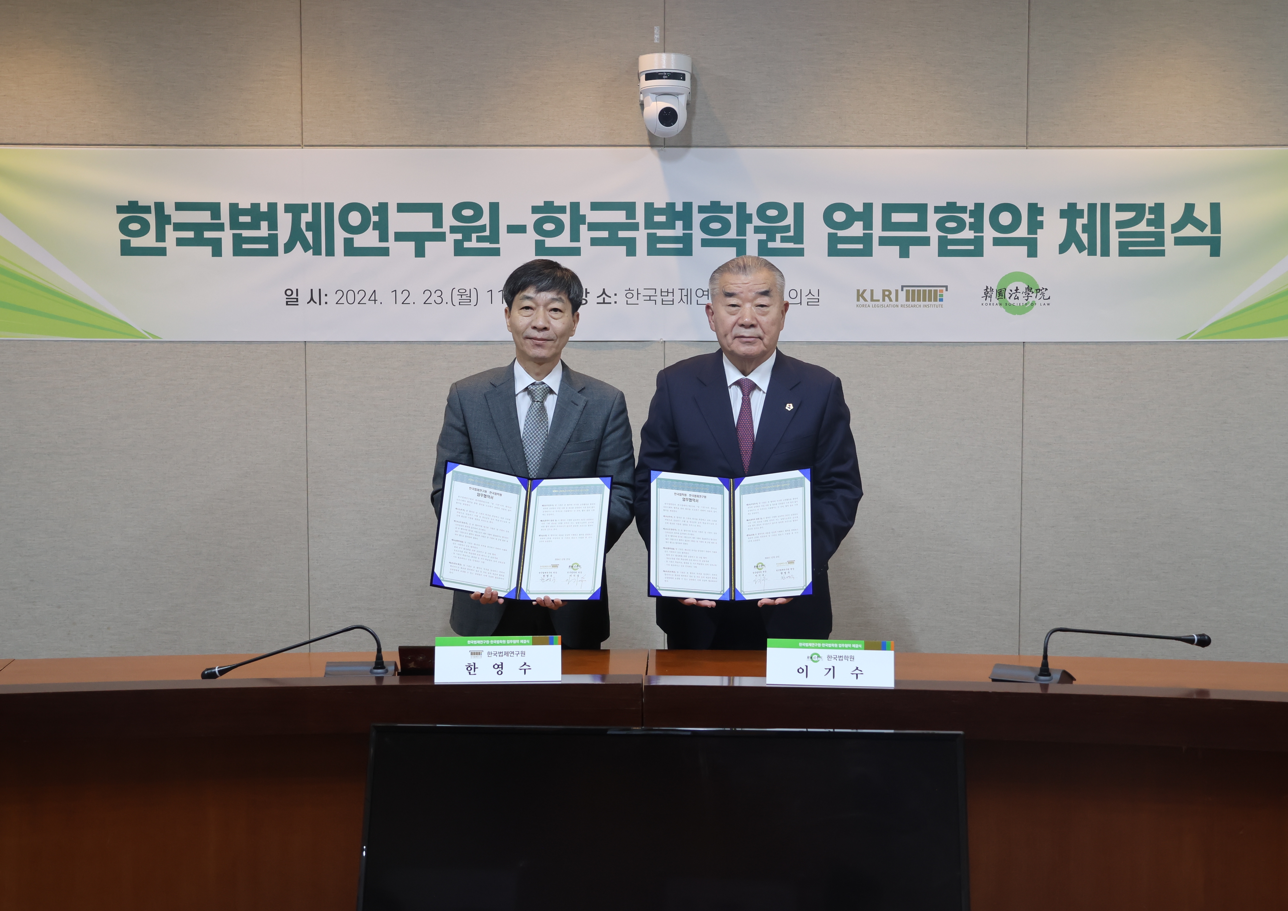 사진 왼쪽부터 한영수 한국법제연구원장, 이기수 한국법학원장